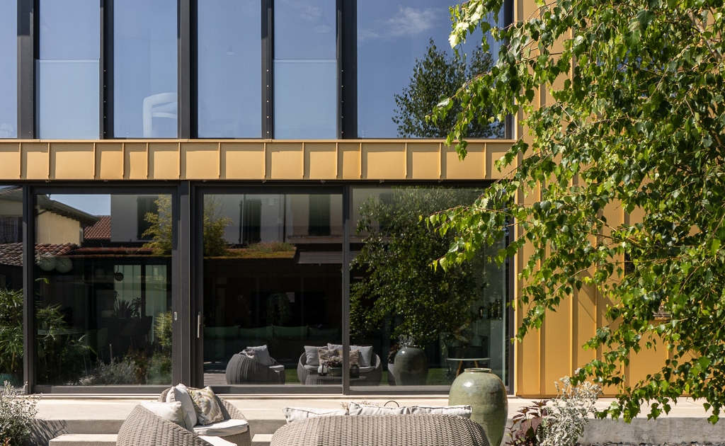 The Gold Inside ha ottenuto la certificazione Passivhaus, ha un fabbisogno energetico prossimo allo zero, emissioni nulle e produce una quantità di energia superiore ai consumi.